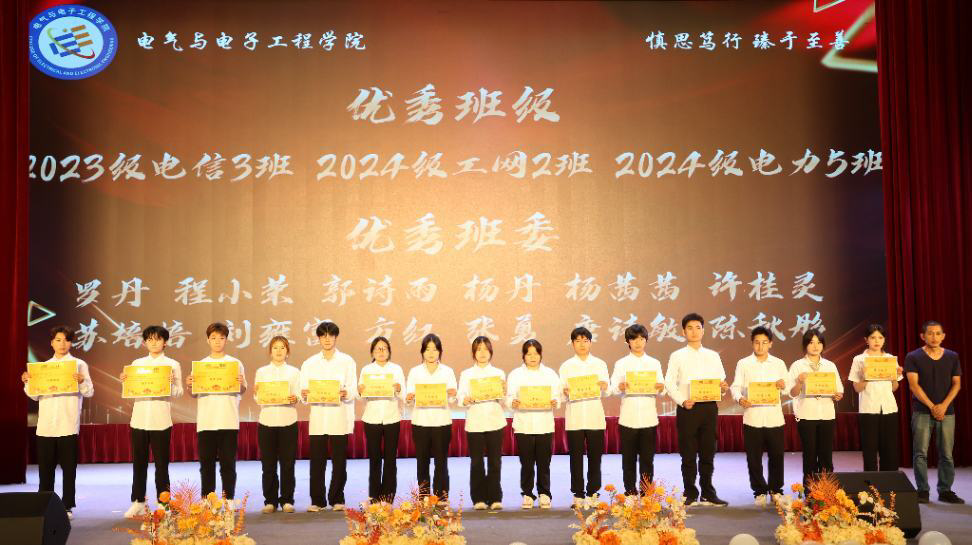 活动开始,电气与电子工程公司党总支书记陈小怡致辞。他表示班级风采大赛暨表彰大会不仅是班级青春活力与卓越风采的展示平台,更是公司育人成果的集中呈现。他提及该会是表彰典礼文化的一部分,激励了全院师生奋勇拼搏,殷切希望师生继续追求卓越,致新致远。