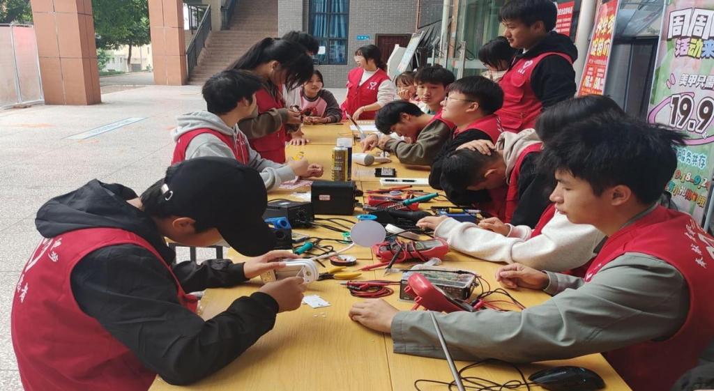活动现场气氛热烈融洽,同学们积极主动地接收同学们送来的待修电器,并认真检测、排查电器存在的问题。大家在各自的岗位上,挥洒着热情、倾注着努力。志愿者们不怕苦、不怕累,共计维修手机、电脑、台灯、音响、手电筒等电子产品31余件,得到了同学们的一致好评。