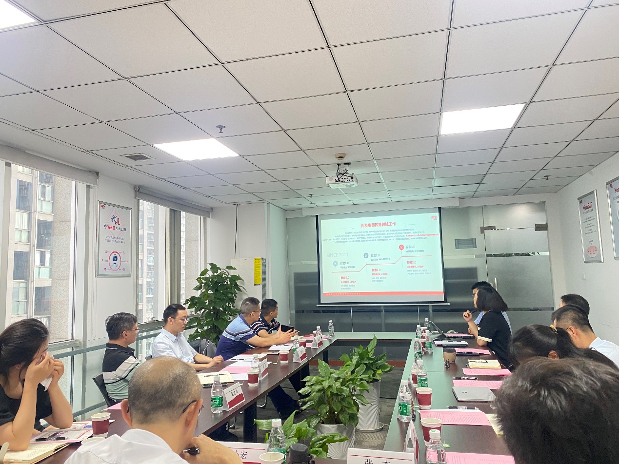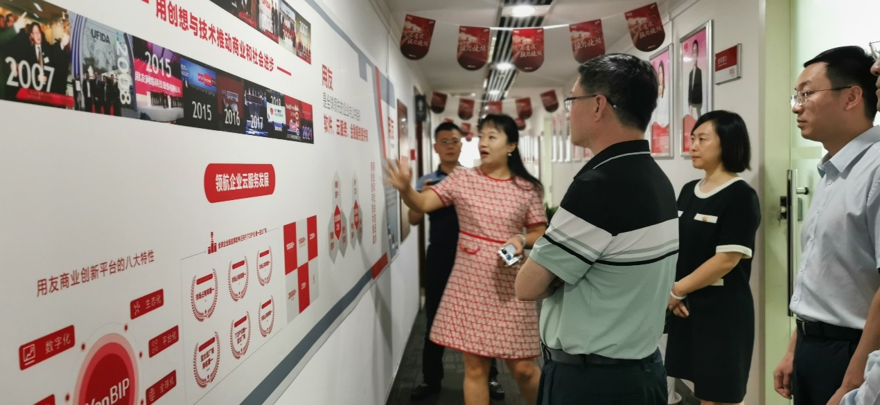 何杰书记一行在用友新道科技有限公司副总裁兼工科事业部总经理耿兆强、用友网络股份有限公司酒业行业助理总经理胡纲、用友网络股份有限公司酒业行业市场总监刘莉、用友新道科技股份有限公司助理总裁兼西南区总经理侯爱华等相关人员陪同下参观了用友网络(四川)公司,并开展了交流座谈。