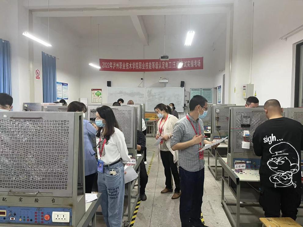 为响应泸州市人社局企业员工技能提升文件精神、提升我市企事业员工的技能水平、加强公司专业学科对地方的服务能力。经过严格认真的培训,公司于2022年3月18日为泸州市各区县的8个消防救援支队、四川古蔺仙潭酒厂有限公司、四川爱家美商业管理有限公司、泸州千惠广告传媒有限责任公司、泸州创能电力工程有限责任公司、重庆翰悦物业管理有限公司泸州分公司等6家企事业单位员工以及部分泸州市退役士兵,共51名学员开展电工(初级、中级)职业技能等级认定工作。本次电工技能等级认定包含了理论知识和实操考核两部分。