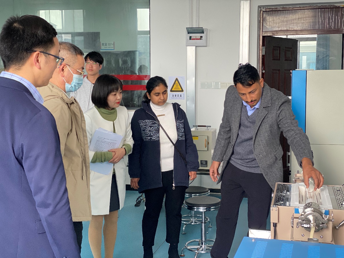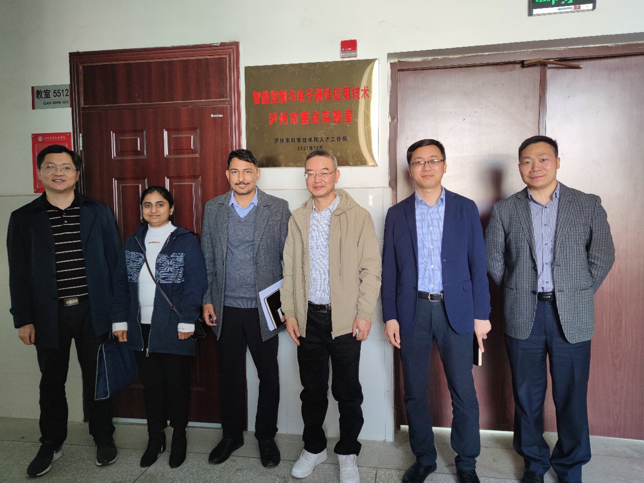 陈卫东副局长一行在公司人员的陪同下,在外籍专家Ashwini Kumar博士后的介绍下,参观公司智能控制与电子器件应用技术泸州市重点实验室,了解公司引进的两位印度籍博士后——Ashwini Kumar、Poorva Sharma当前的科研工作开展情况。实验室参观结束后,双方就外专引智等方面开展交流座谈。
