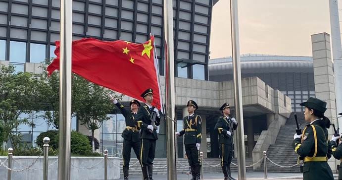 升旗仪式不仅让同学们接受了一次爱国洗礼,激发着同学们以崭新的面貌迎接学习和生活,为祖国辉煌的明天而努力,也让五星红旗扎根心中,激励着同学们奋发图强,为祖国明天的繁荣富强而不懈奋斗。