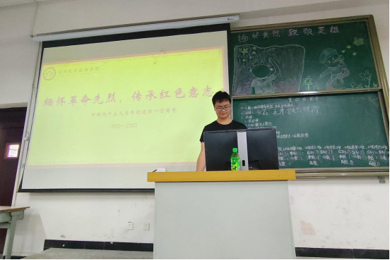 电子与电子工程公司员工会组织部同学提前到场,检查各班级布置情况,团会在同学们齐唱团歌《光荣啊,中国共青团》中拉开序幕,同学们庄严肃立,跟随“英雄念英雄”视频一起回顾当年革命先烈革命的艰辛历程。