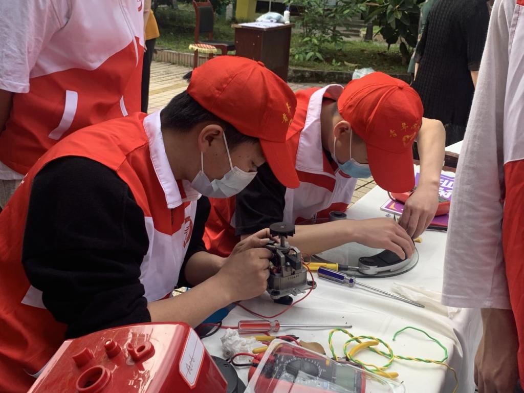 在辅导员沈良的带领下,早上8点志愿者们在公司东门集合清点人数,强调活动注意事项,志愿者们穿好志愿服装前往活动地点布置场地。活动过程中志愿者们在各自的岗位上认真努力,挥洒热情,现场井然有序,一一为社区居民进行相关物品的维修,现场充满了志愿者与社区民众的欢声笑语,活动一直持续到12:00结束。