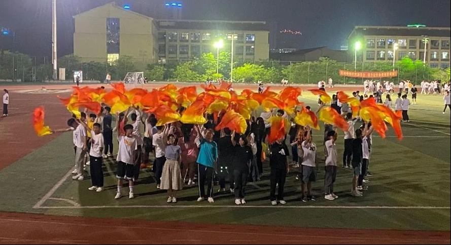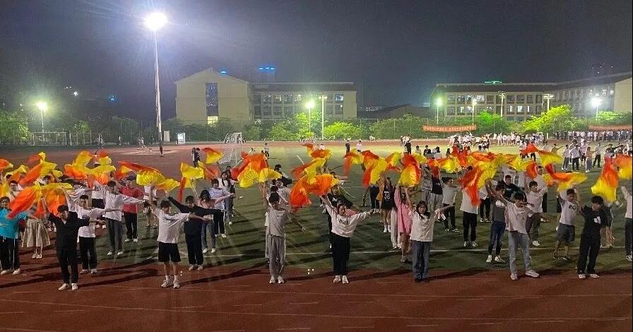 舞蹈表演方队80名同学们怀揣着饱满的热情在风中翩翩起舞,跟随音乐的的律动整齐的跳着舞蹈。整个表演方队队形千变万化、姿态万千,大家激情饱满的练习着各种舞蹈的姿势,为即将到来的“玉章”体育文化节做出充分准备。