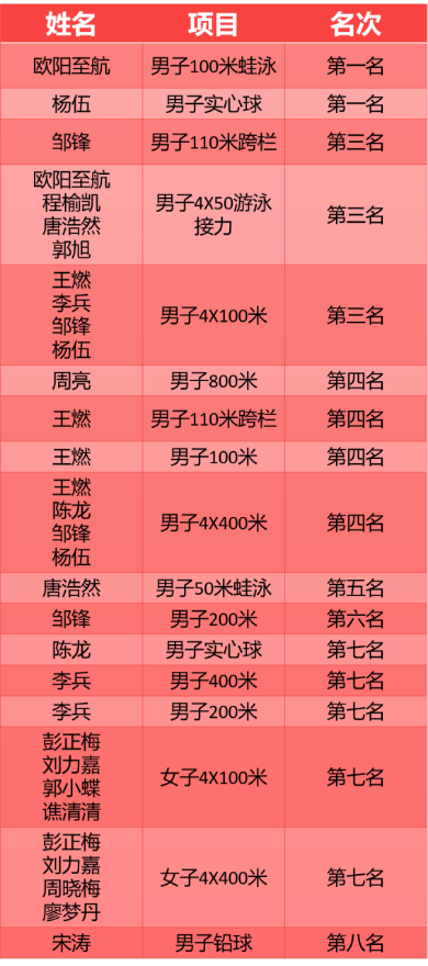 4月23日14:30,各项运动比赛正式开始,在激烈的赛场上,公司运动健儿本着“友谊第一,比赛第二”的原则,奋力拼搏,超越自我。运动员们蓄势待发,只见他们在跑道上飞驰的身影。最终公司在男子50米蛙泳、100米蛙泳、男子实心球、4X50游泳接力、100m、400m、800m、110米跨栏均取得了不错的成绩。
