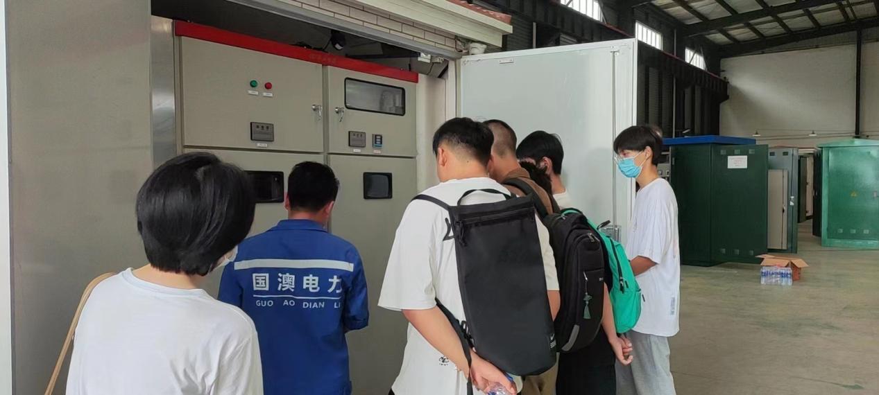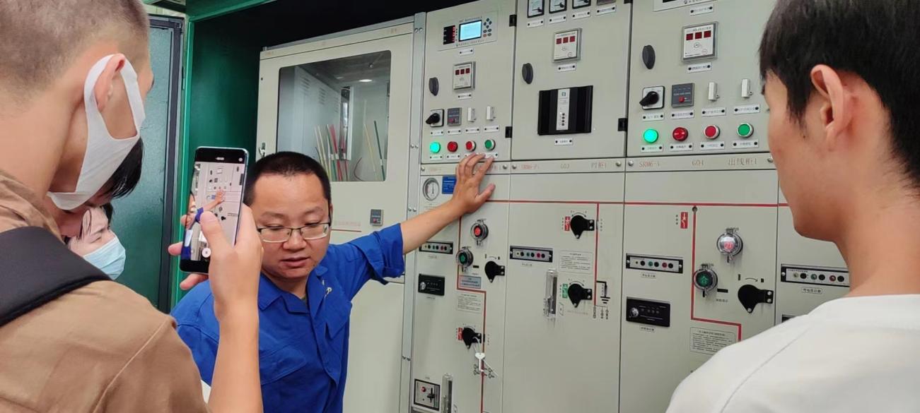 在参观期间,负责带领同学们的是电力系统自动化专业07级的学长王刚,并为同学们现场讲解智能柜的接线原理,倒闸操作的步骤。