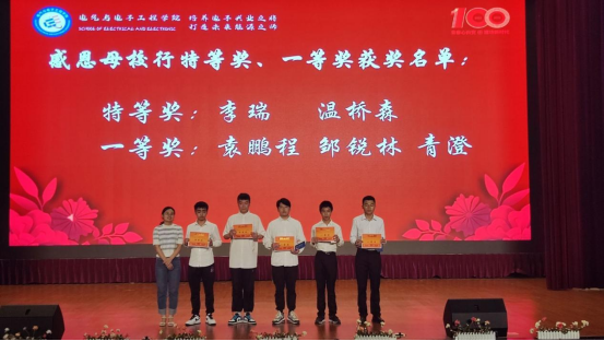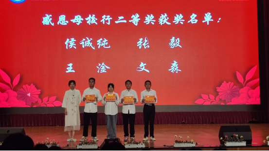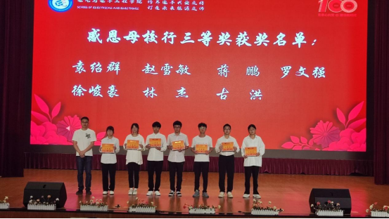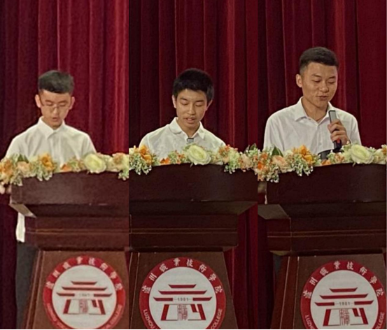 节目表演结束后,老师为获奖同学一一颁发证书。优秀共青团干代表20级电信2班朱派金、青年志愿者先进个人21级电力2班邹锐林、“感恩母校行”21级电信2班青澄等3名同学先后发表获奖感言。他们纷纷表示感谢公司领导与老师的关怀与教育,在今后的生活与工作中会不断完善自己,秉持勤俭节约,坚持艰苦奋斗,做一名懂感恩、会生活、有特长的泸职学子。