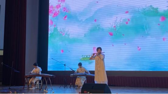 红叶艺术团表演的舞蹈《Bang Bang》为开场烘托氛围,21级电信专业辅导员李姝萌老师带来的文艺表演《青城山下》,别有生动的音乐节奏,带给同学们不一样的感受。街舞协会带来的表演《ice cream》、最后由锦袂汉服协会带来的表演《赋花韵》作为闭幕表演。