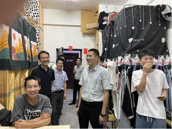 2022年6月17日,公司领导班子到东华校区5号公寓关心同学们,亲切地提醒同学们注意公司疫情防控要求、注意寝室用电安全等情况。