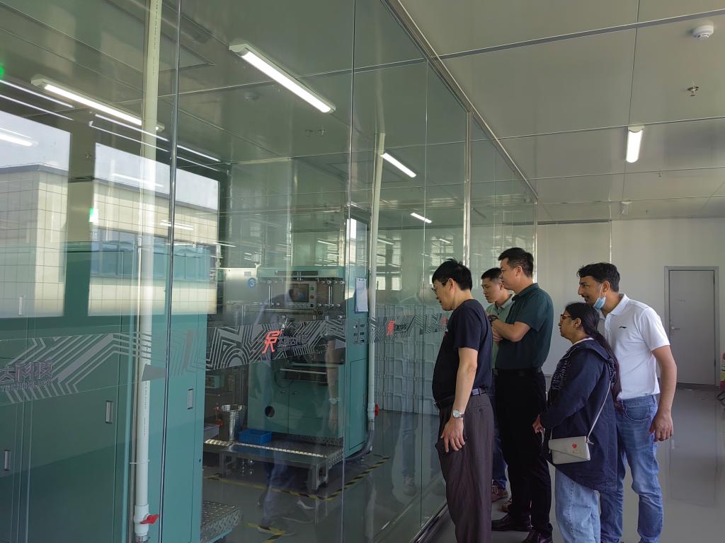 邱富军等一行人员在公司总经办张总、行政经理冯经理的陪同下,先后参观了公司展厅、生产车间、研发试验中心,详细了解了公司的创业背景、发展历程、产品研发与产品应用等情况;参观过程中,双方就技能人才联合培养、项目研究、成果转化、实训基地等校企合作内容与空间进行了交流。