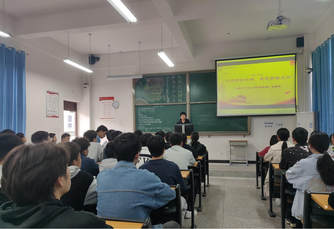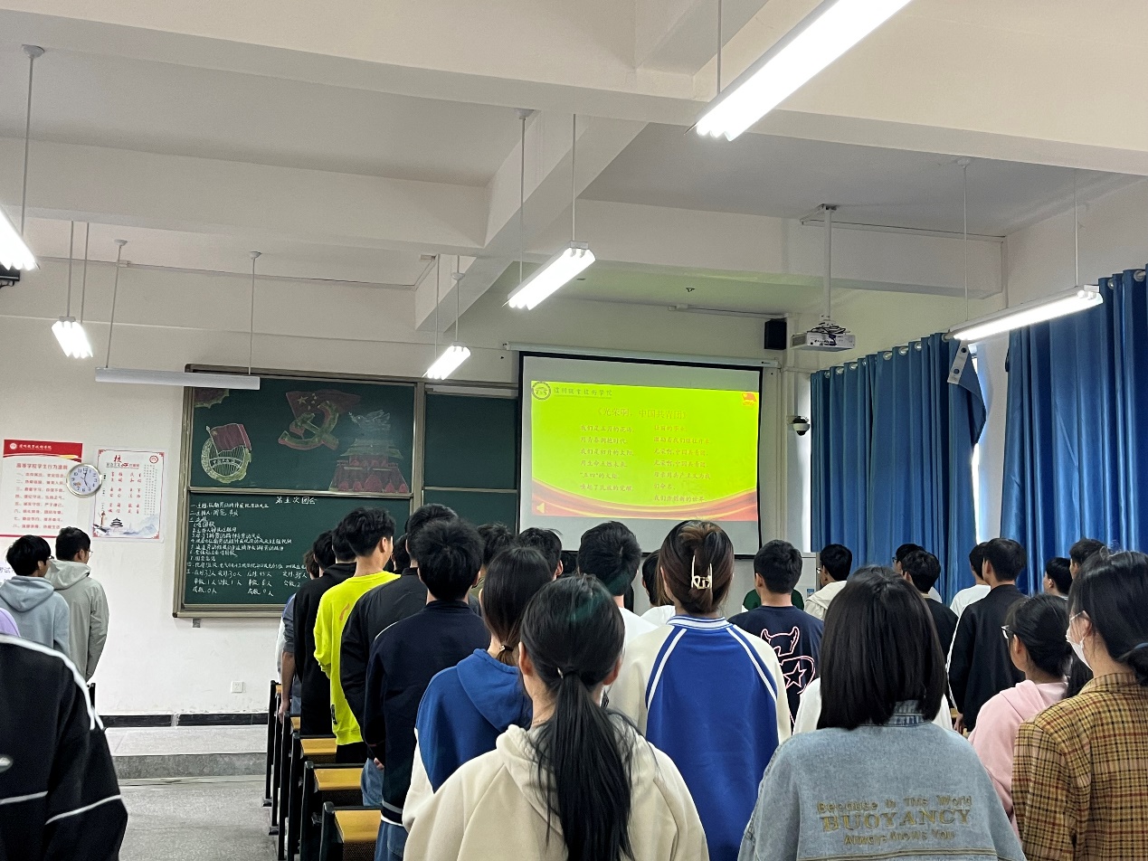 每个教室里氛围庄严肃静,本次团会在高昂激荡的团歌声中拉开了帷幕,每位同学都在认真学习劳动精神,氛围良好。